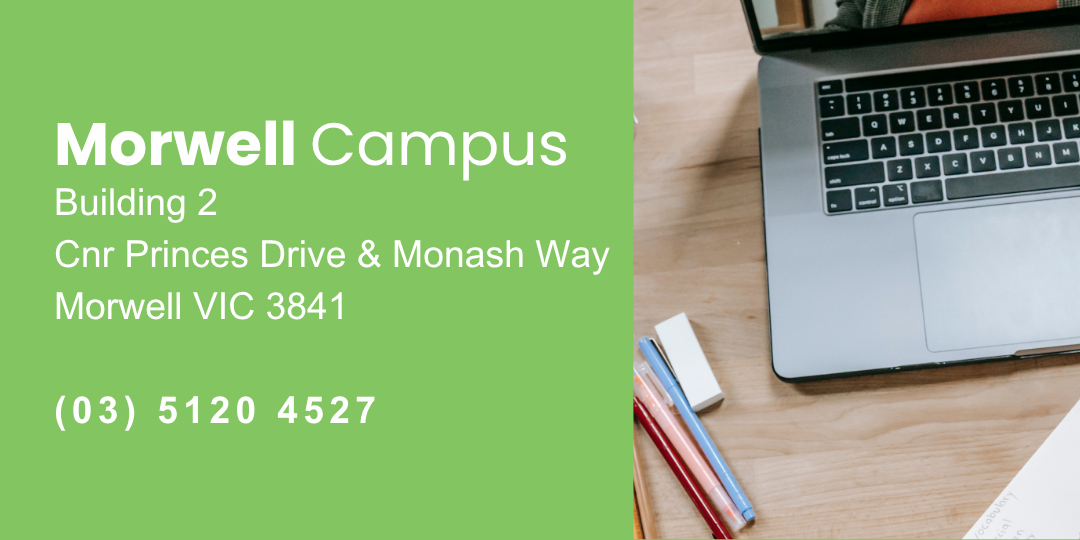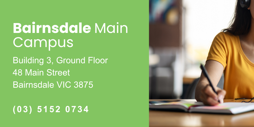 Conveniently located on the ground floor of Building 3, the Bairnsdale Learning Hub is perched above the picturesque Mitchell River. We're open from 8:30am to 4:30pm, Monday to Friday, making it easy for you to access our services and facilities at your convenience. We're here to help you make the most of your study journey.